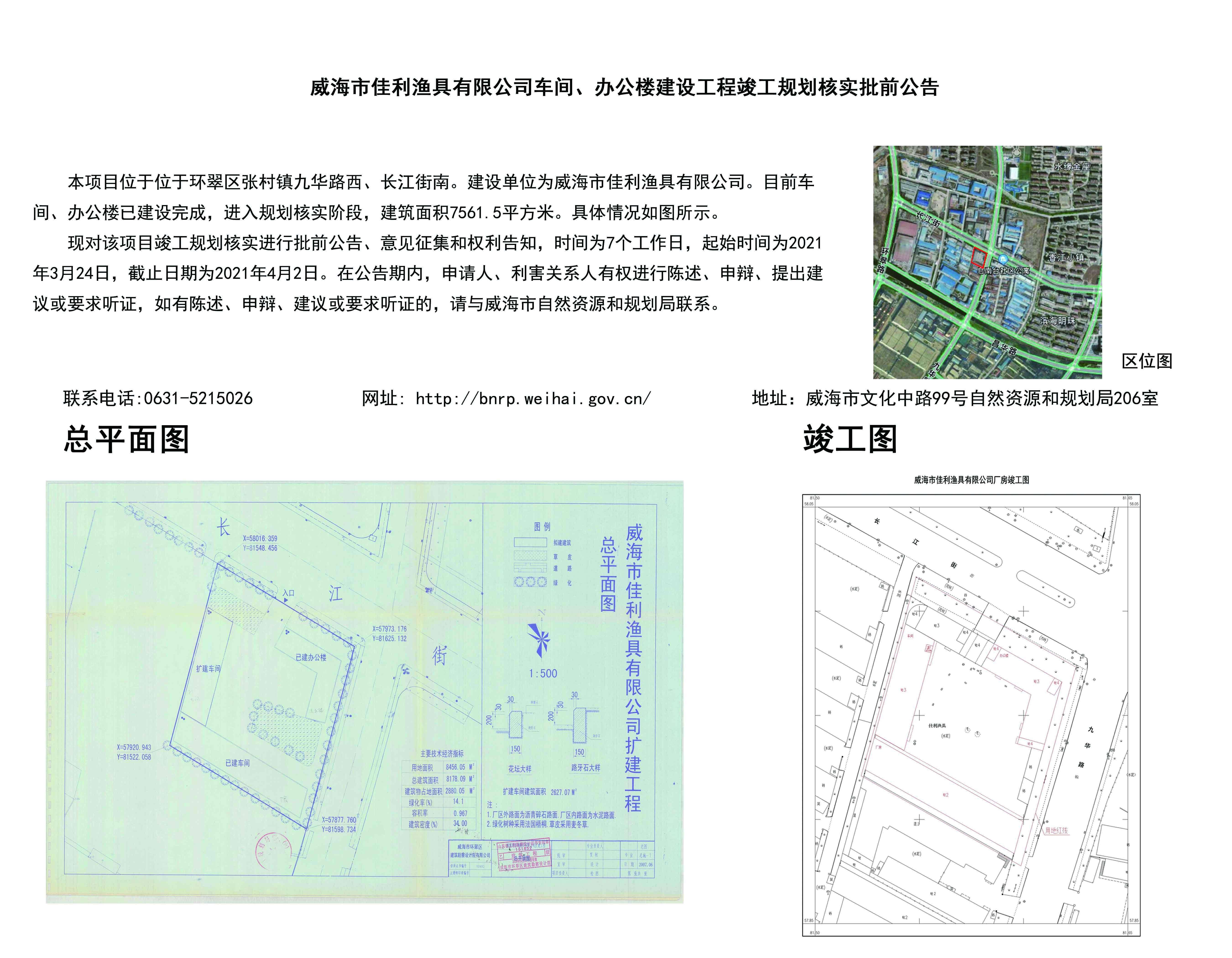 威海市佳利渔具有限公司车间、办公楼建设工程竣工规划核实批前公告