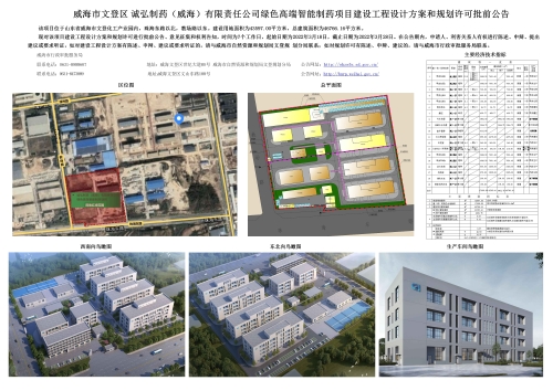 诚弘制药(威海)有限责任公司绿色高端智能制药项目建设工程设计方案和规划许可批前公告