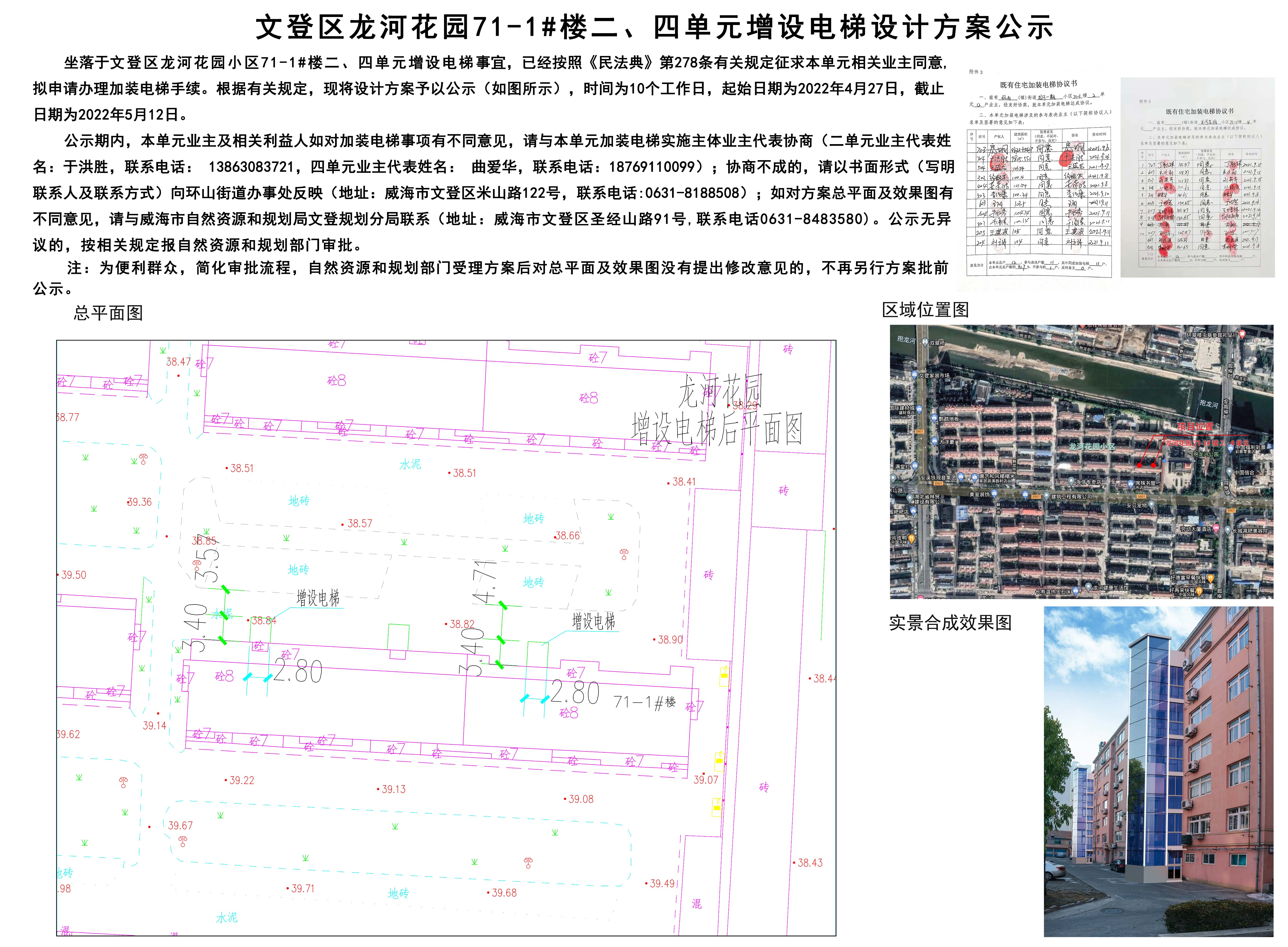 文登区龙河花园71-1号楼二、四单元增设电梯设计方案公示