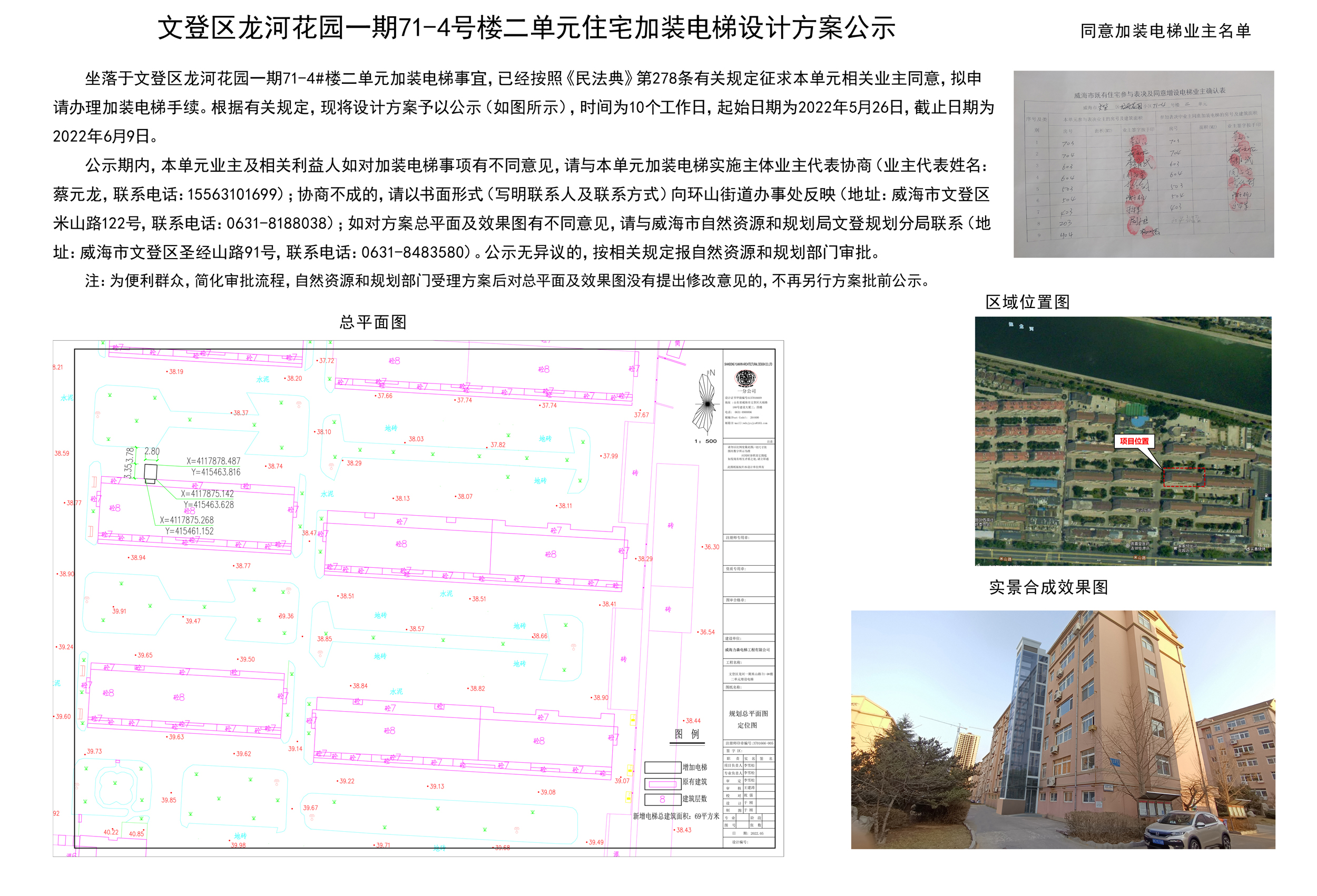 文登区龙河花园一期71-4号楼二单元住宅加装电梯设计方案公示