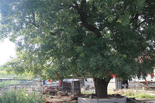 编号:37108200085 等级:三级 别名:黄连茶 科属:漆树科,黄连木属 拉丁学名:Pistacia chinensis Bunge 位置:荣成市崖西镇桥南头村内 树龄:210余年 树高:13米 胸围:280厘米 冠幅:14米 历史:古树耸立在村南边的一堵斜坡上,在干高0.8米处分为三大主枝,树下用条石围砌了树池很好地保护了这棵古树,树势旺盛,苍劲挺拔,虬枝旁逸,层层密密,树冠像一把巨伞,浓翠蔽日,果实为紫红色,早春的时候叶子为红色的,等到入秋之后,叶子就渐渐变为深红色或者是橙黄色。传说明崇祯年间,隋姓老人带领一家人逃难到此,但见这里山清水秀,土地肥沃,花果遍地,五患不侵,遂在此定居下来,繁衍生息。儿孙们选择村南面的斜坡作为隋姓居民的祖坟,让老人遥望故乡,黄连木就种在山坡上。 | ||||
