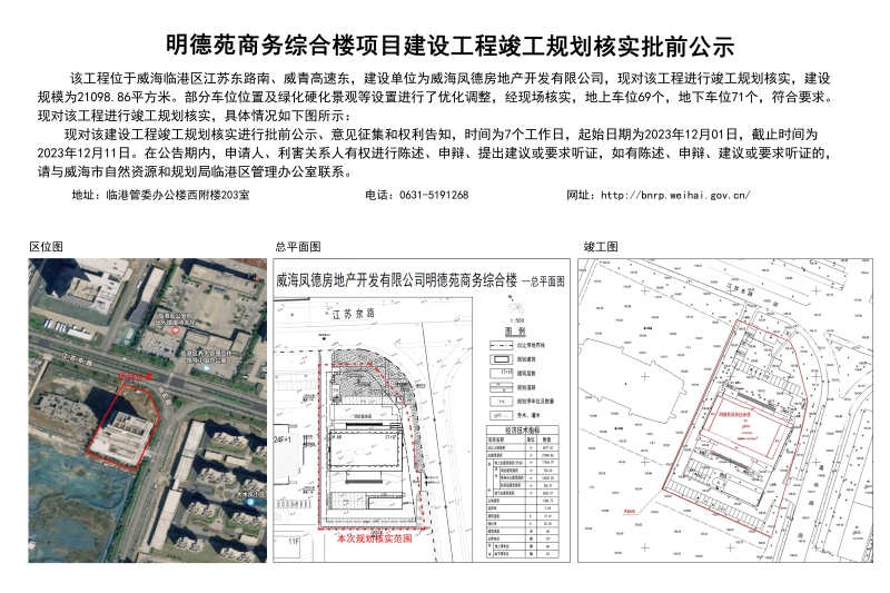 明德苑商务综合楼项目建设工程竣工规划核实批前公示