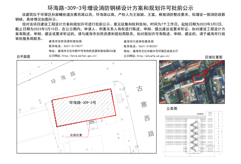 环海路-309-3号增设消防钢梯设计方案和规划许可批前公示