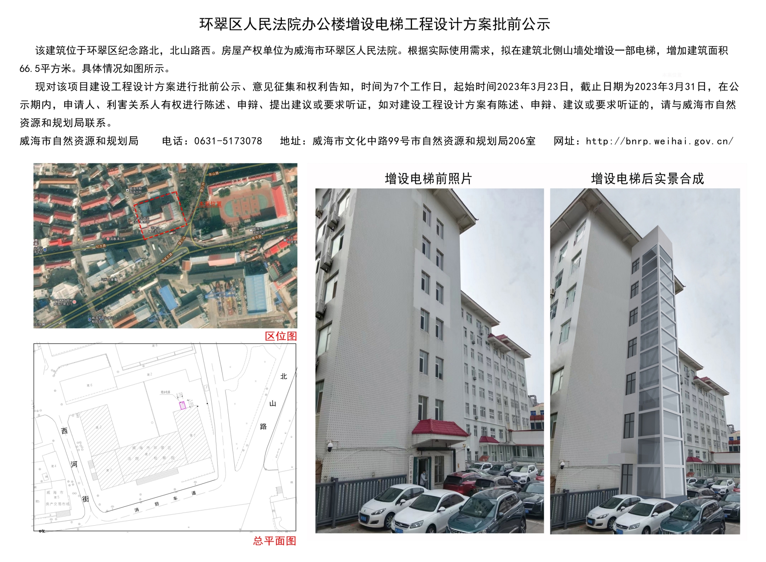 环翠区人民法院办公楼增设电梯工程设计方案批前公示