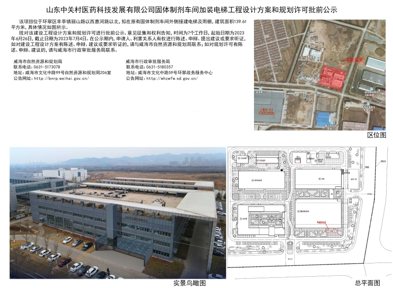 山东中关村医药科技发展有限公司固体制剂车间加装电梯工程设计方案和规划许可批前公示