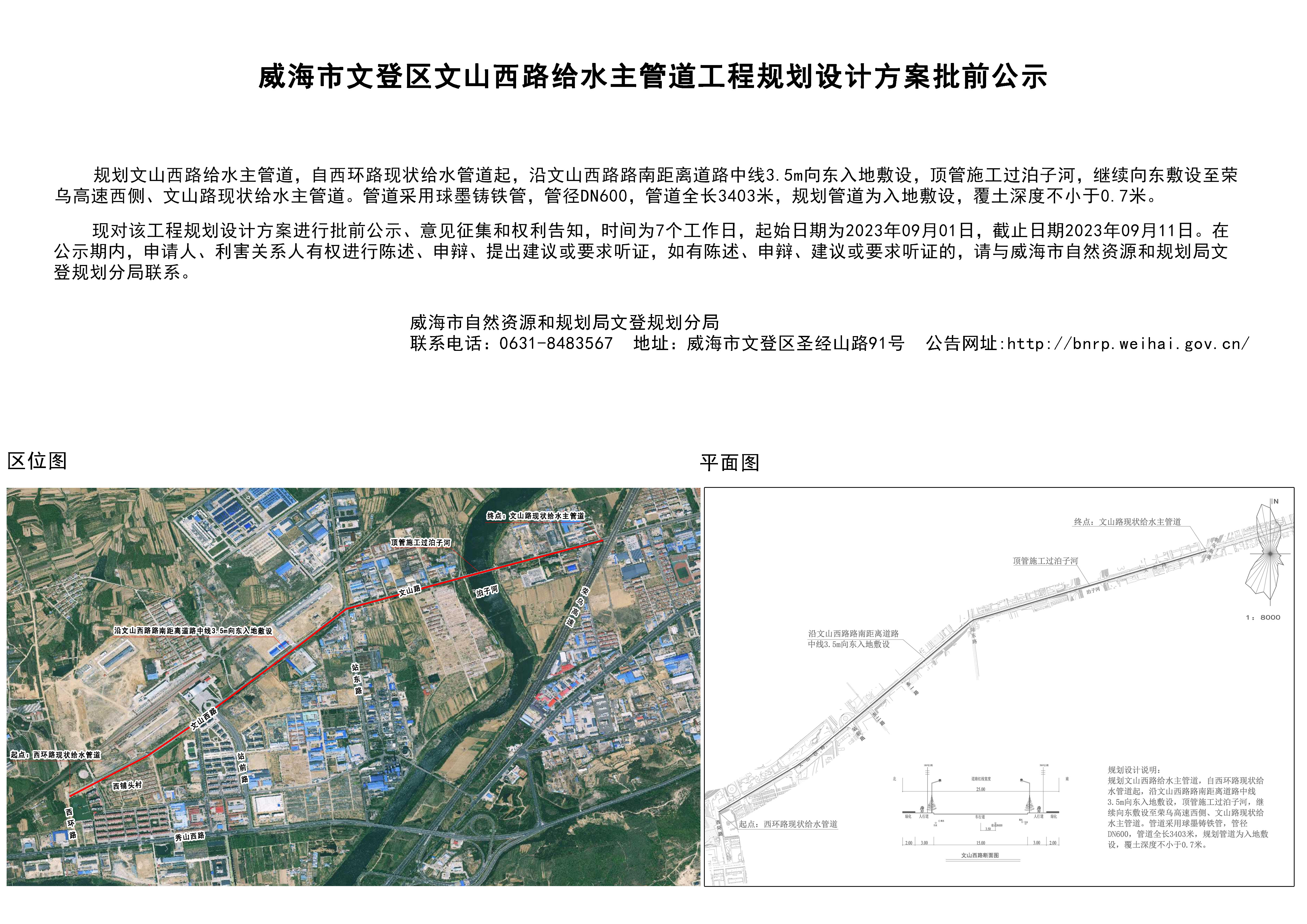 威海市文登区文山西路给水主管道工程规划设计方案批前公示