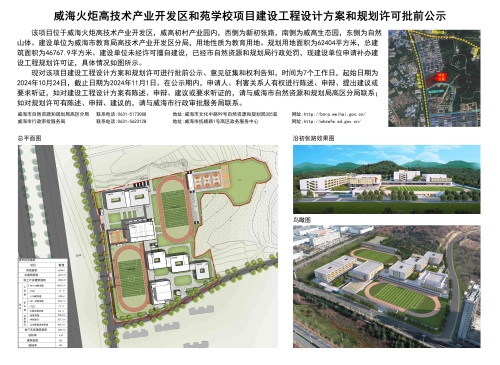 威海火炬高技术产业开发区和苑学校项目建设工程设计方案和规划许可批前公示