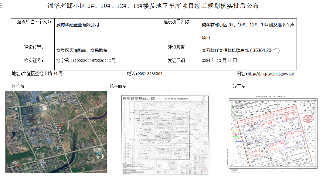 锦华茗邸小区9#、10#、12#、13#楼及地下车库项目竣工规划核实批后公布