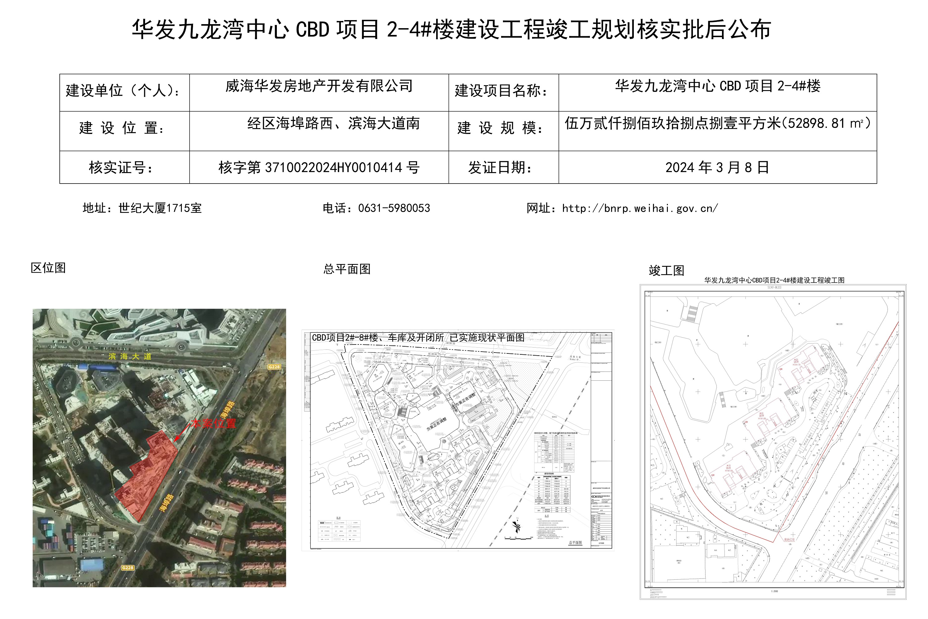 华发九龙湾中心CBD项目2-4#楼建设工程竣工规划核实批后公布