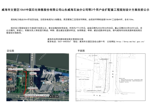 威海市文登区10kV中国石化销售股份有限公司山东威海石油分公司等2个用户业扩配套工程规划设计方案批前公示