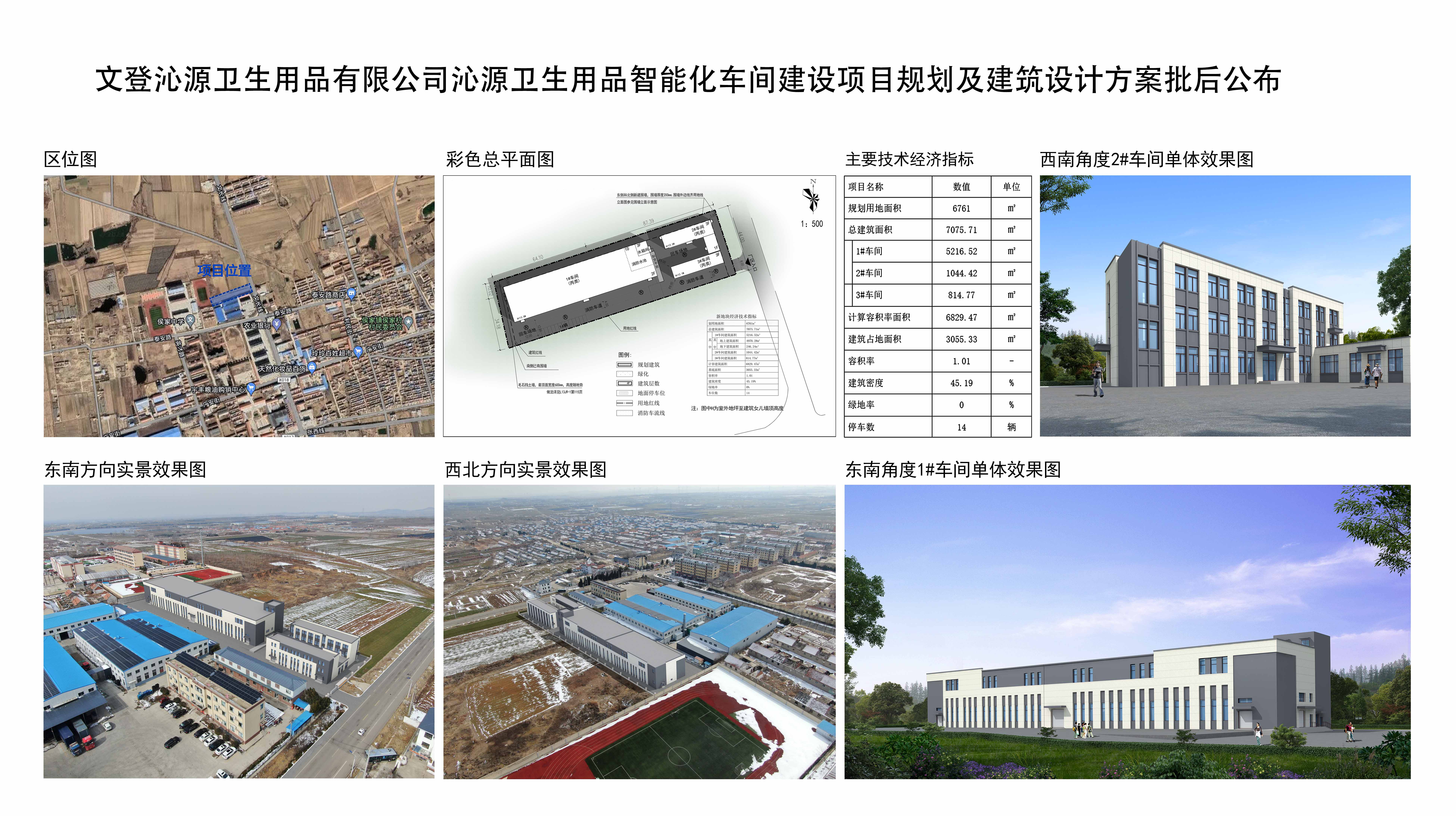 文登沁源卫生用品有限公司沁源卫生用品智能化车间建设项目规划及建筑设计方案批后公布