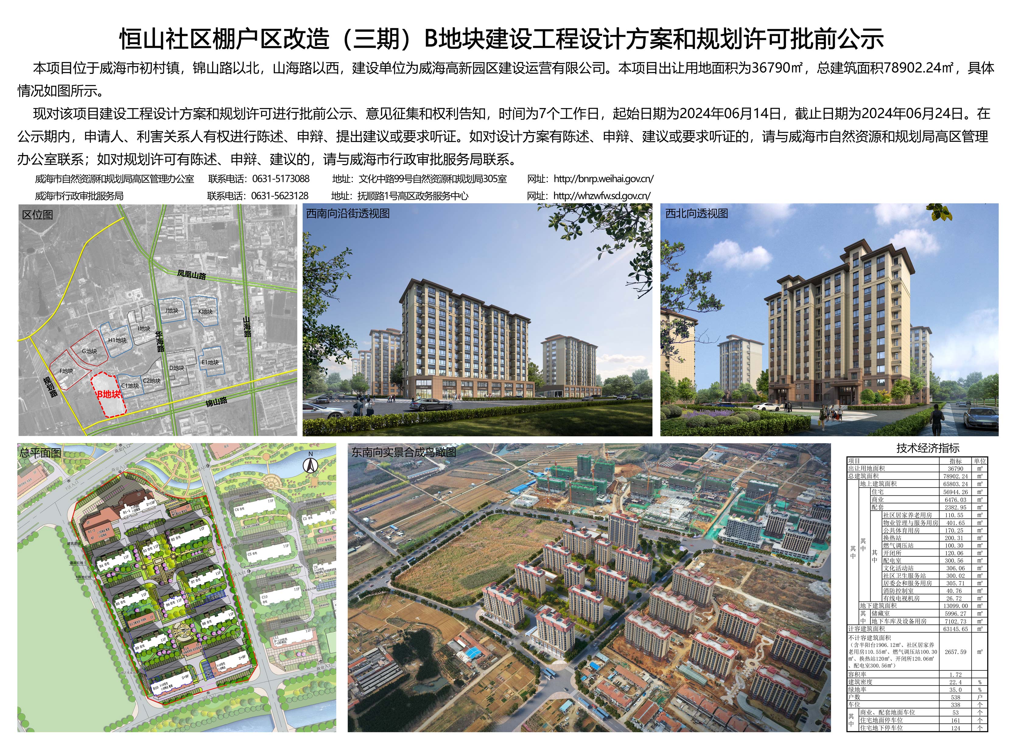 恒山社区棚户区改造(三期)B地块建设工程设计方案和规划许可批前公告