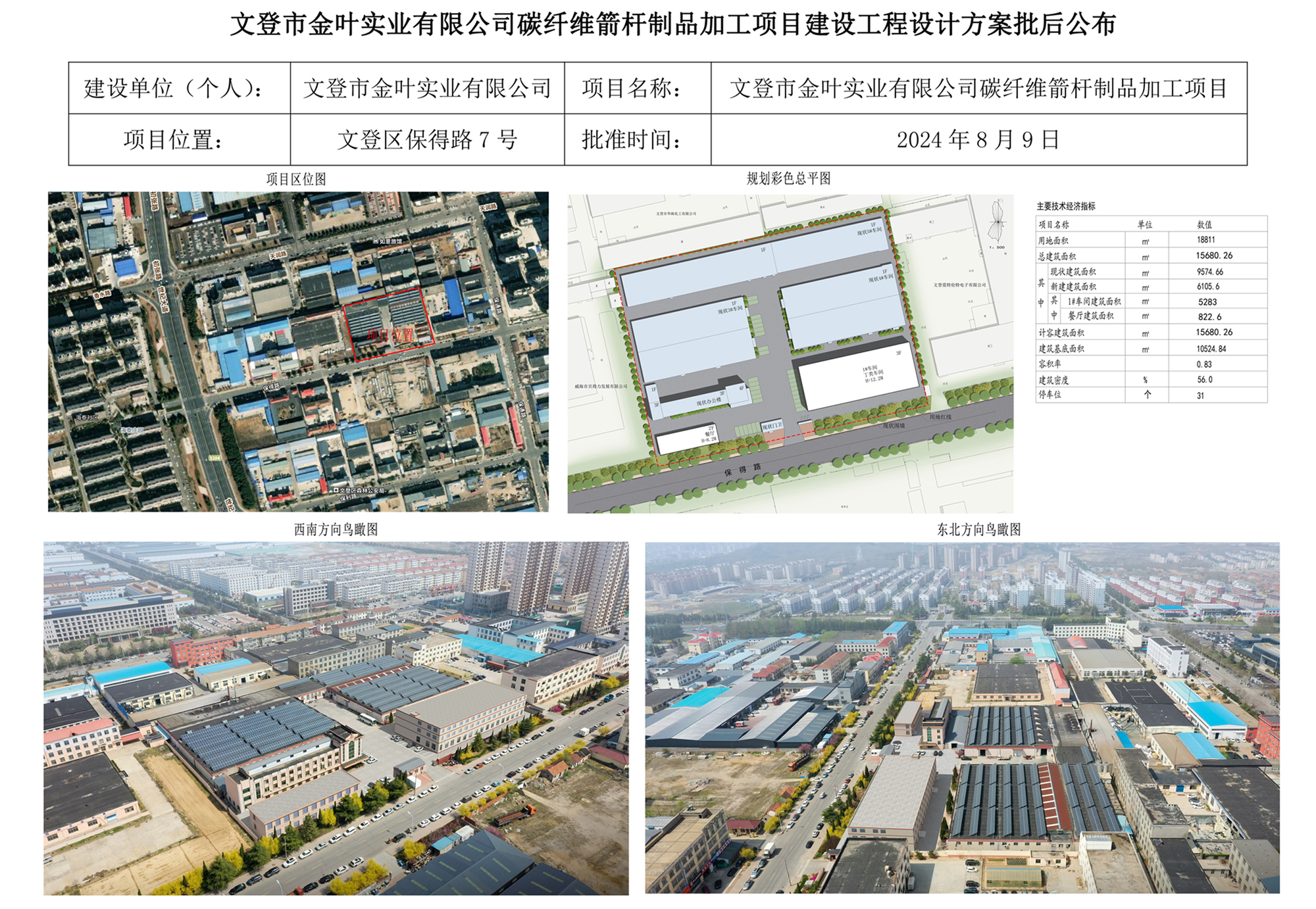 文登市金叶实业有限公司碳纤维箭杆制品加工项目建设工程设计方案批后公布