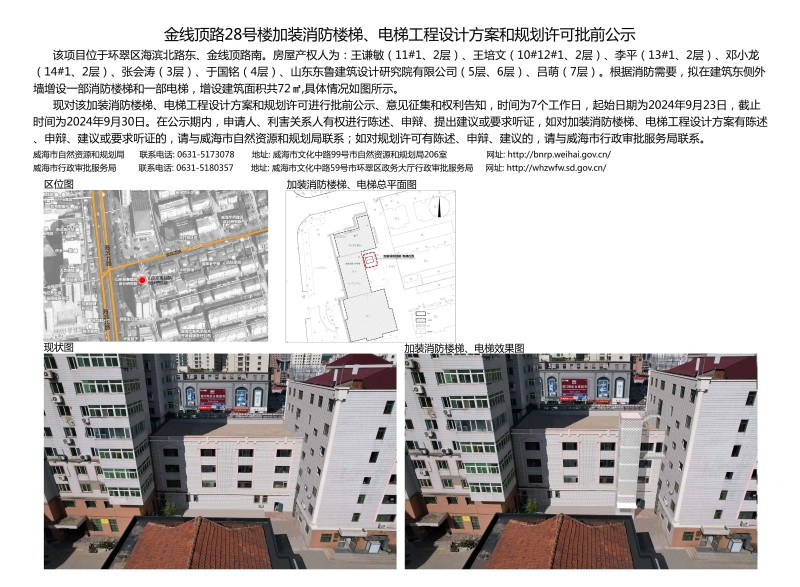 金线顶路28号楼加装消防楼梯、电梯工程设计方案和规划许可批前公示