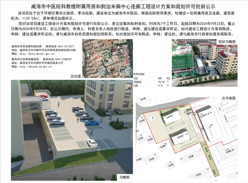 威海市中医院科教楼附属用房和到治未病中心连廊工程设计方案和规划许可批前公示