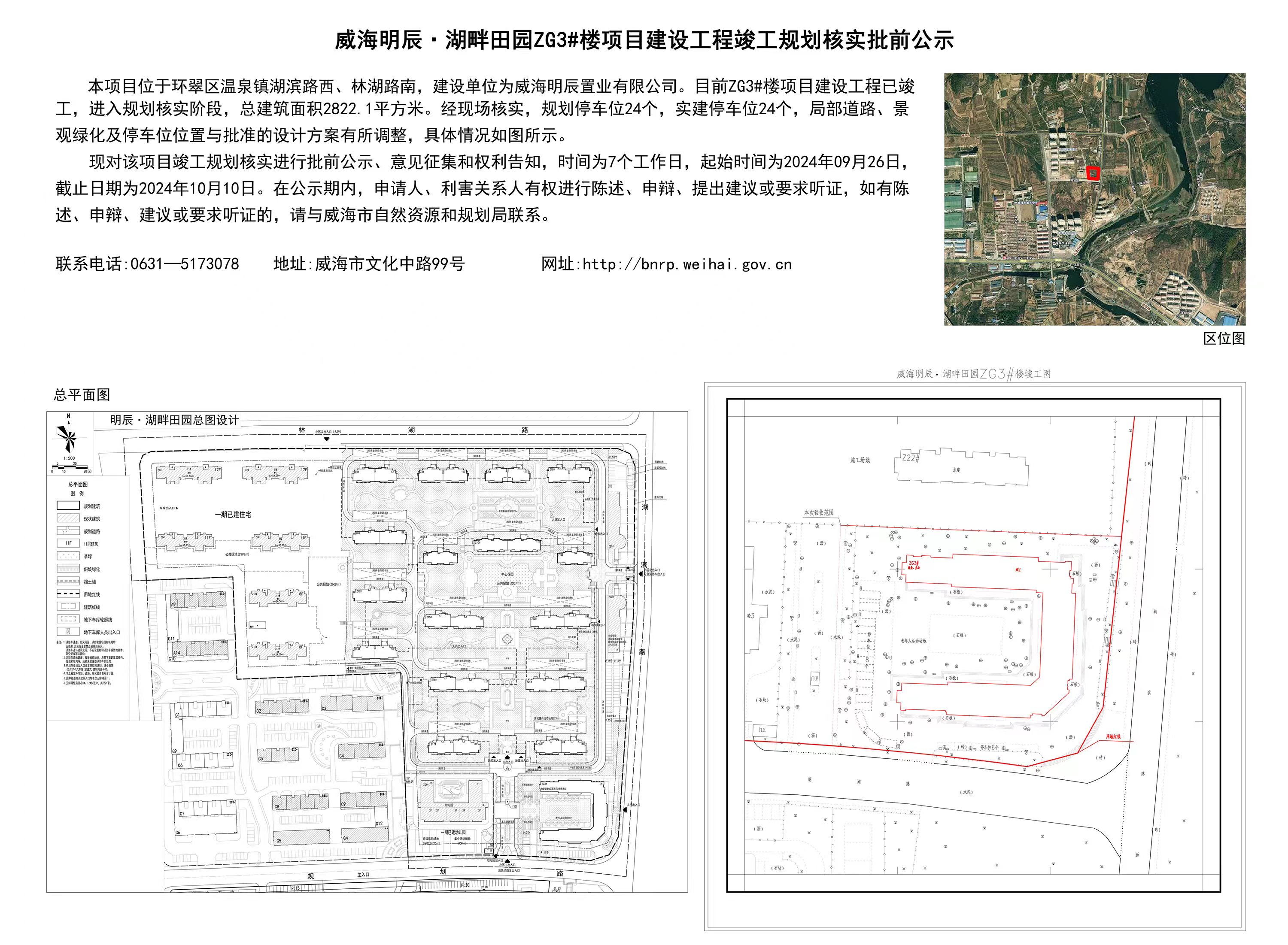 威海明辰湖畔田园ZG3#楼项目建设工程竣工规划核实批前公示