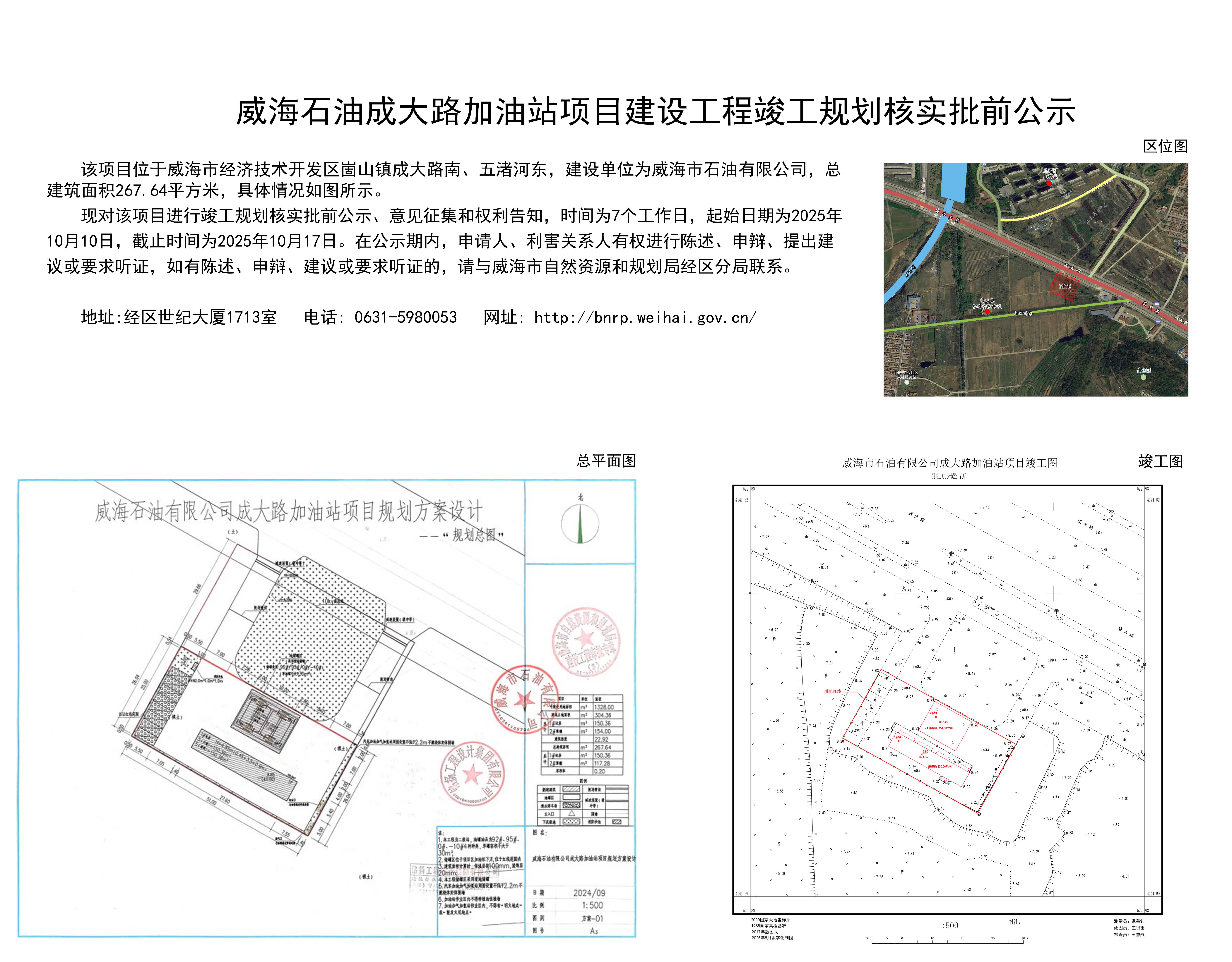 威海石油成大路加油站项目建设工程竣工规划核实批前公示