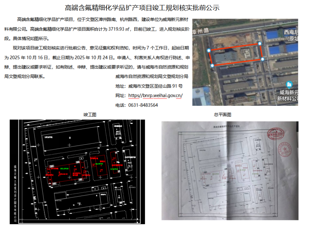 高端含氟精细化学品扩产项目竣工规划核实批前公示