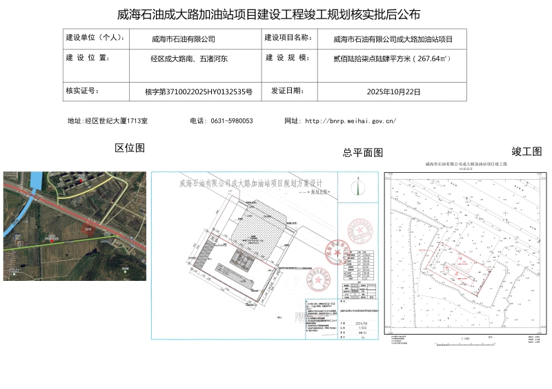 威海石油成大路加油站项目建设工程竣工规划核实批后公布