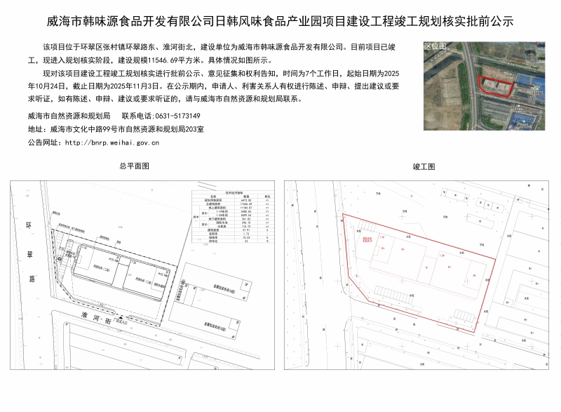 威海市韩味源食品开发有限公司日韩风味食品产业园项目建设工程竣工规划核实批前公示