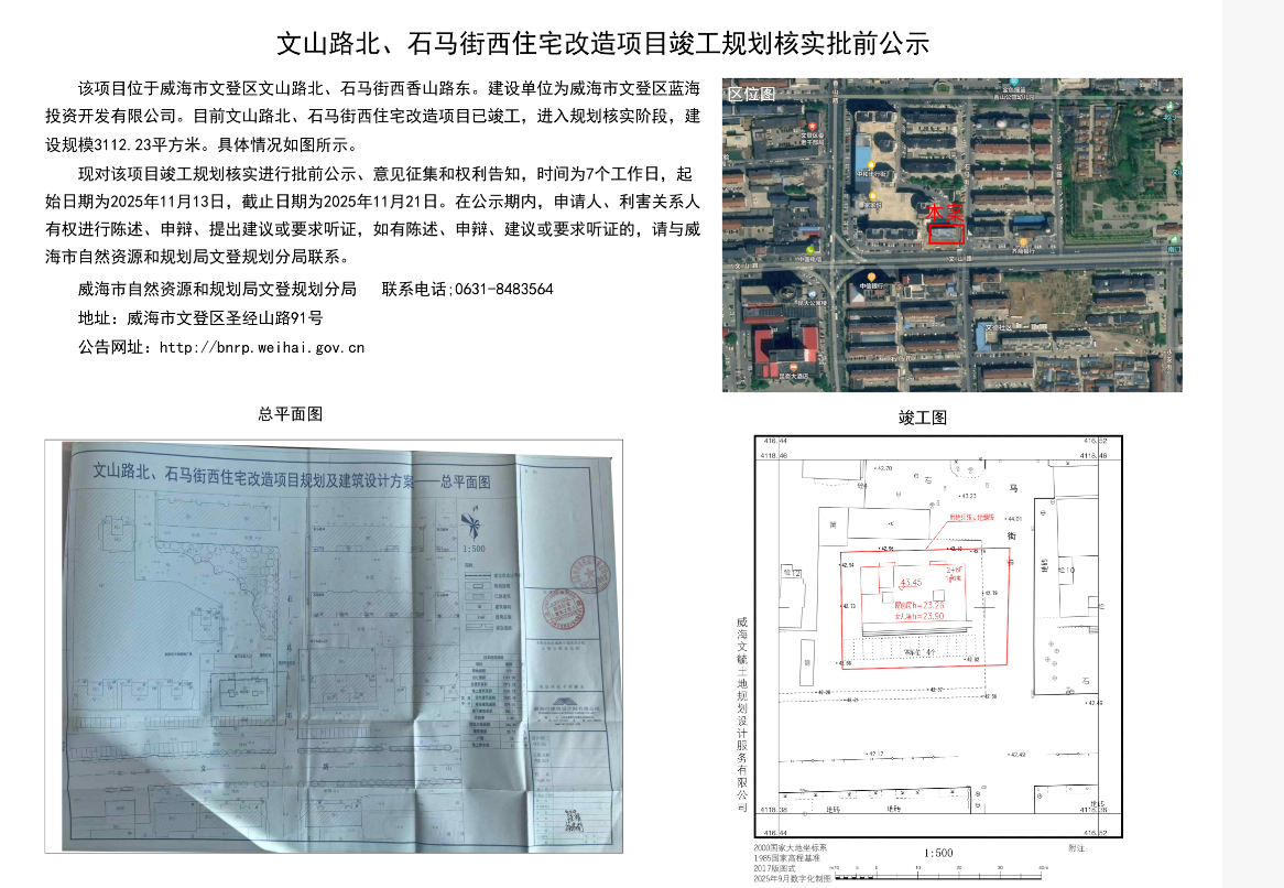 文山路北、石马街西住宅改造项目竣工规划核实批前公示