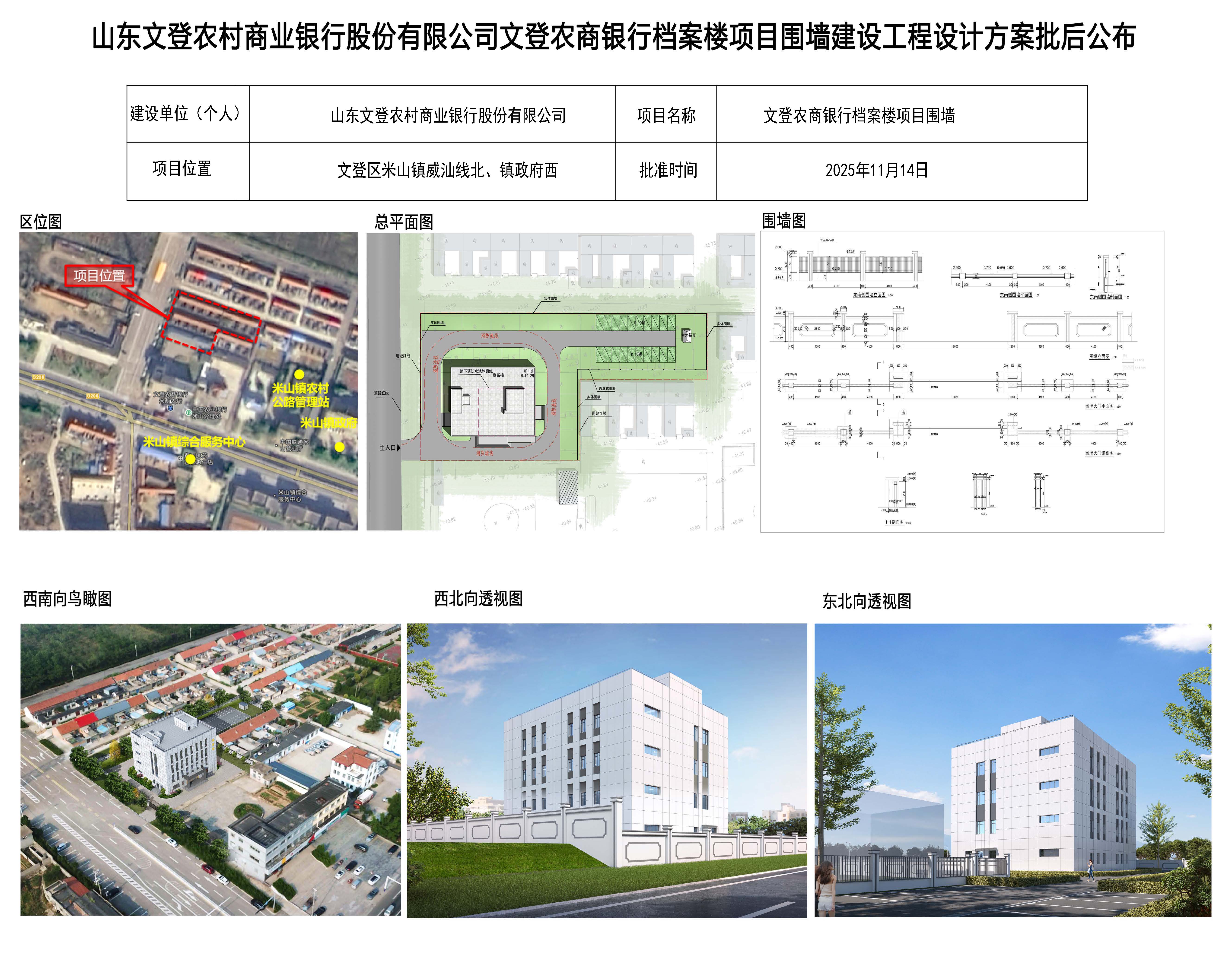 山东文登农村商业银行股份有限公司文登农商银行档案楼项目围墙建设工程设计方案批后公布