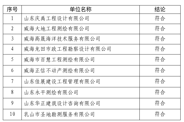 | 威海市自然资源和规划局关于2025年度测绘资质单位监督检查结果的公告 | ||||