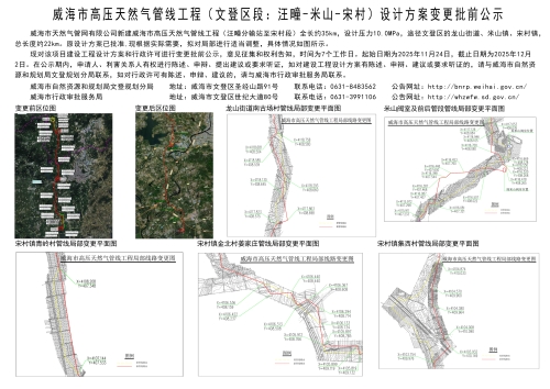 威海市高压天然气管线工程(文登区段:汪疃-米山-宋村)设计方案变更批前公示