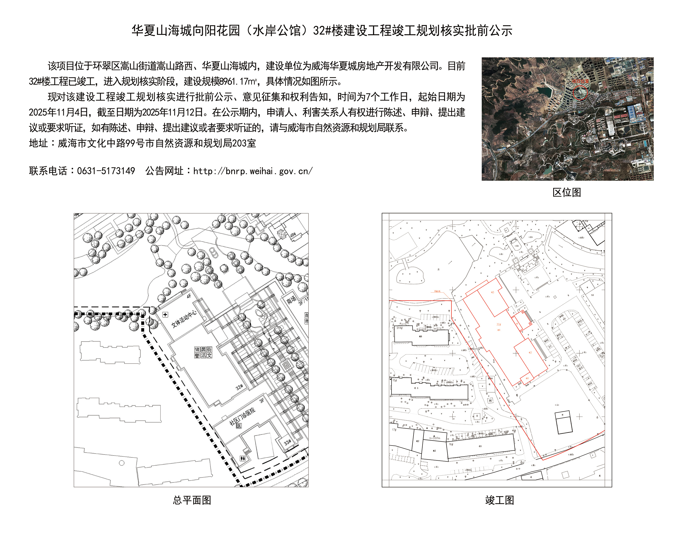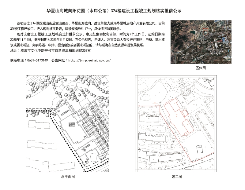 华夏山海城向阳花园(水岸公馆)32#楼建设工程竣工规划核实批前公示