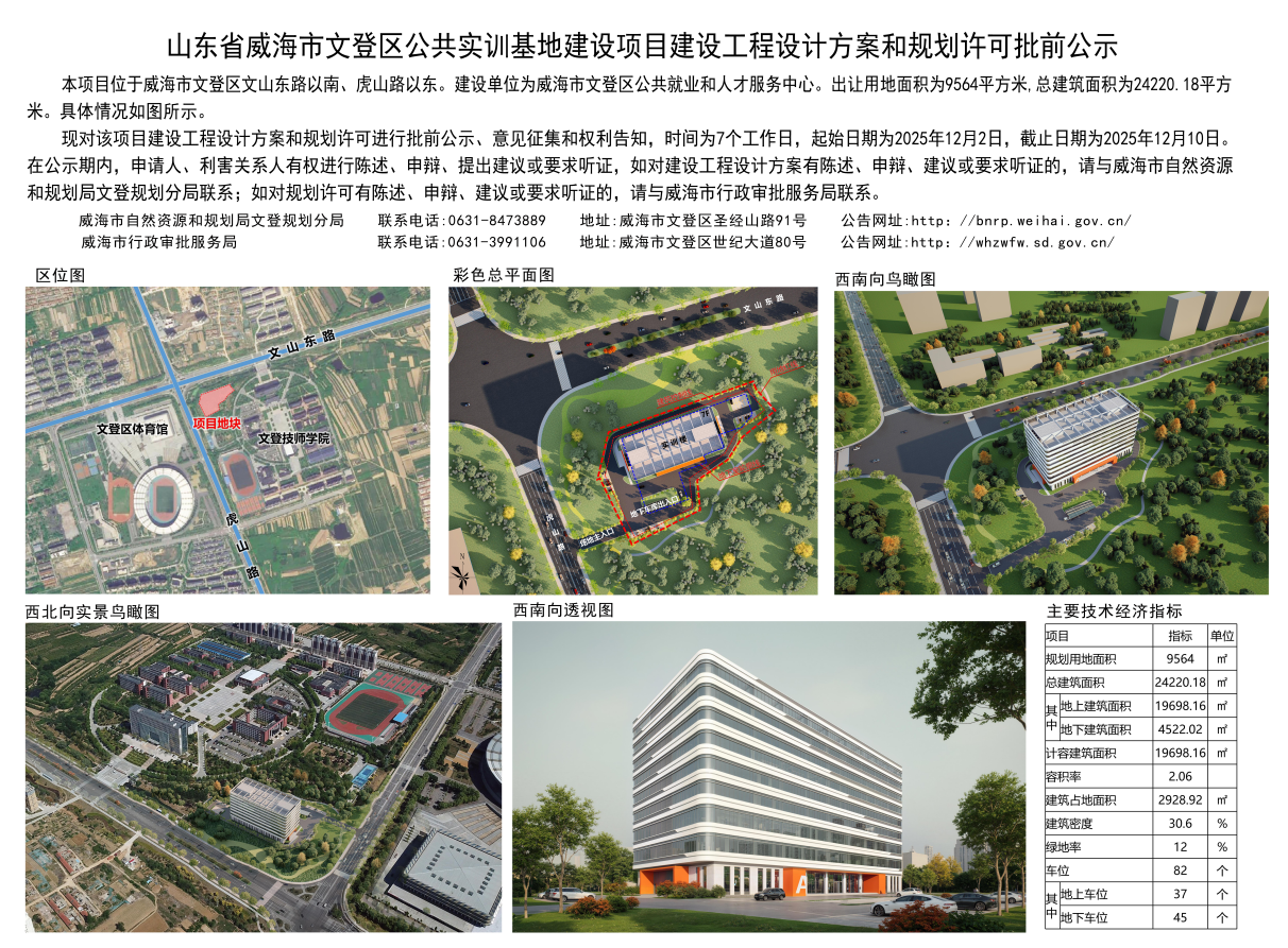 山东省威海市文登区公共实训基地建设项目建设工程设计方案和规划许可批前公示