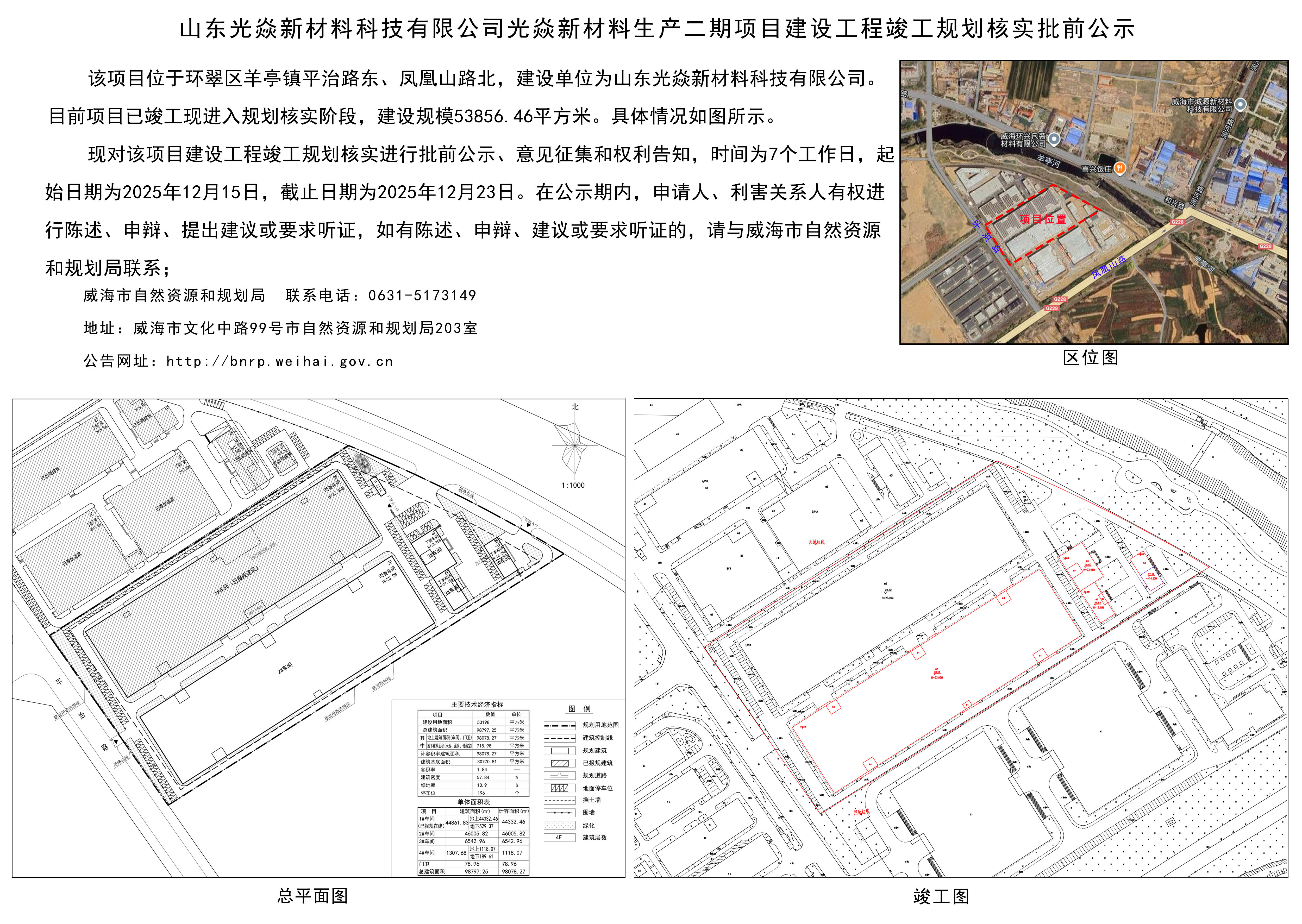 山东光焱新材料科技有限公司光焱新材料生产二期项目建设工程竣工规划核实批前公示