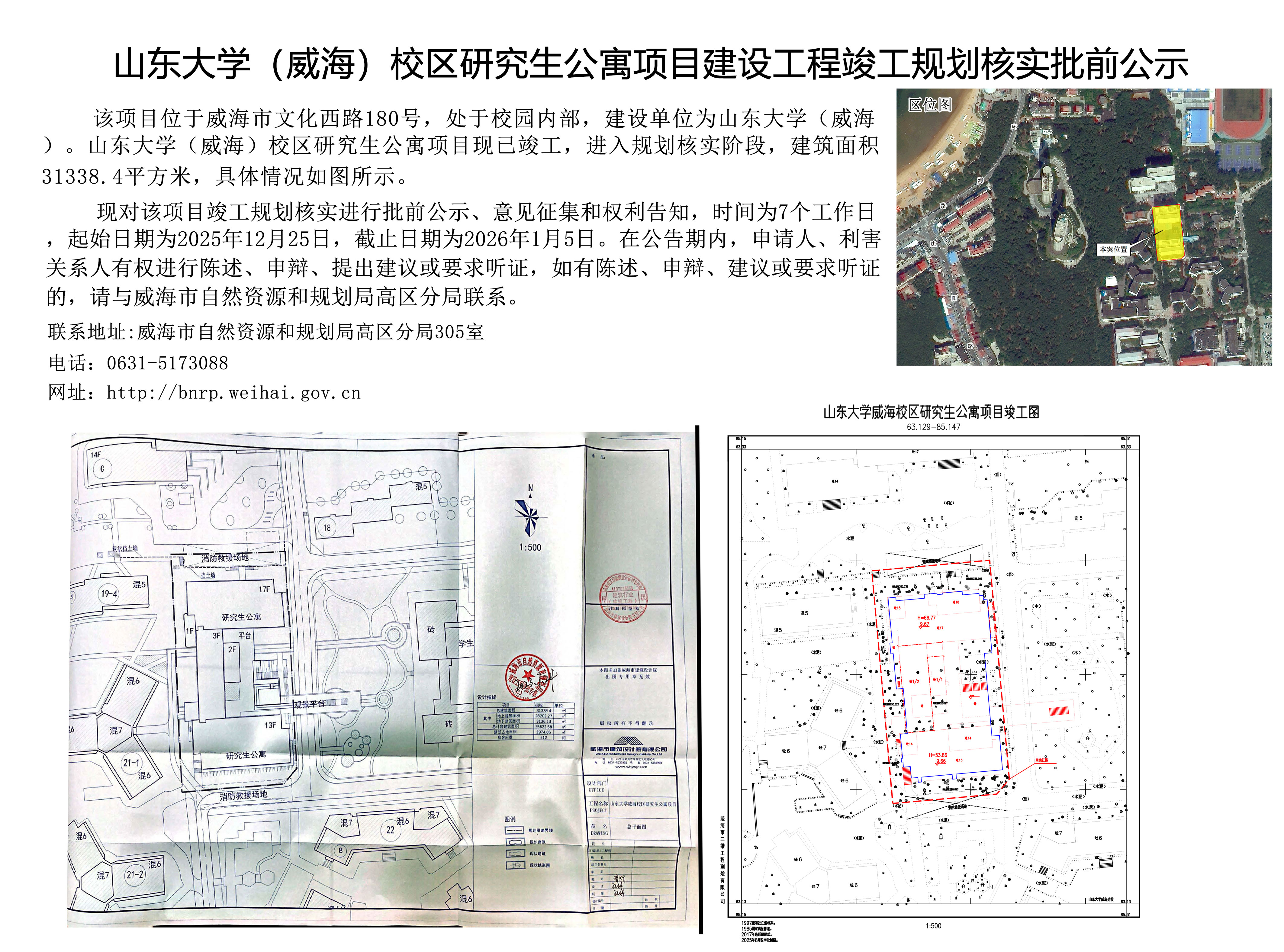 山东大学(威海)校区研究生公寓建设工程竣工规划核实批前公示