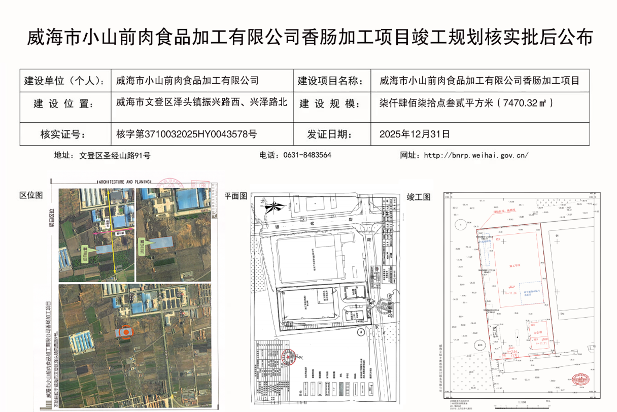威海市小山前肉食品加工有限公司香肠加工项目竣工规划核实批后公布