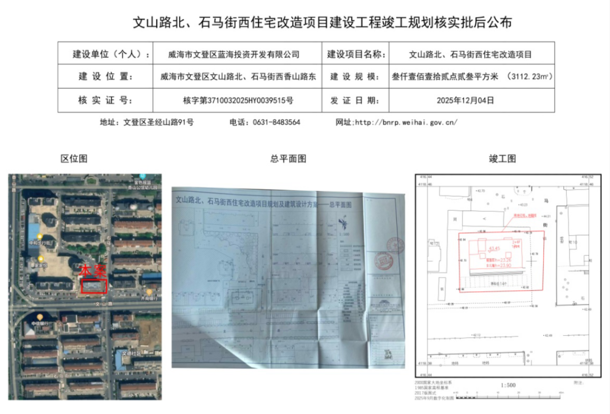 文山路北、石马街西住宅改造项目建设工程竣工规划核实批后公布