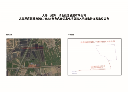 大唐(威海)绿色能源发展有限公司文登泽库镇慈家滩5.76MW分布式光伏发电项目接入系统设计方案批后公布