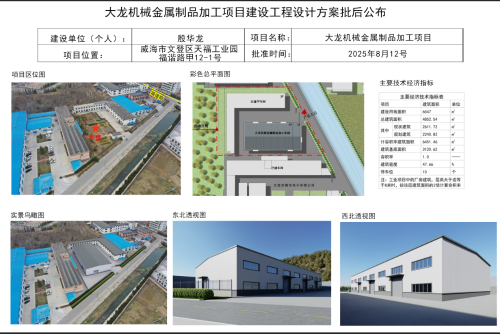 大龙机械金属制品加工项目建设工程设计方案批后公布