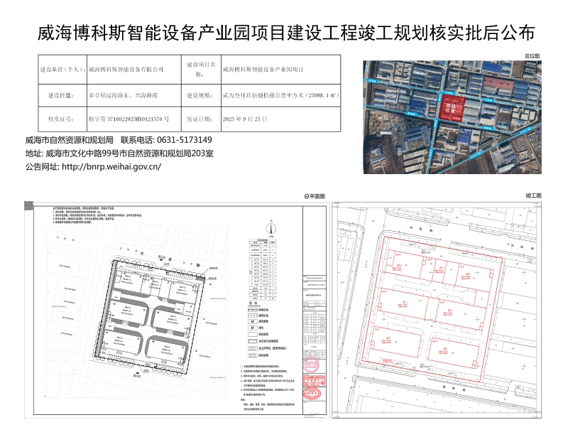 威海博科斯智能设备产业园项目建设工程竣工规划核实批后公布