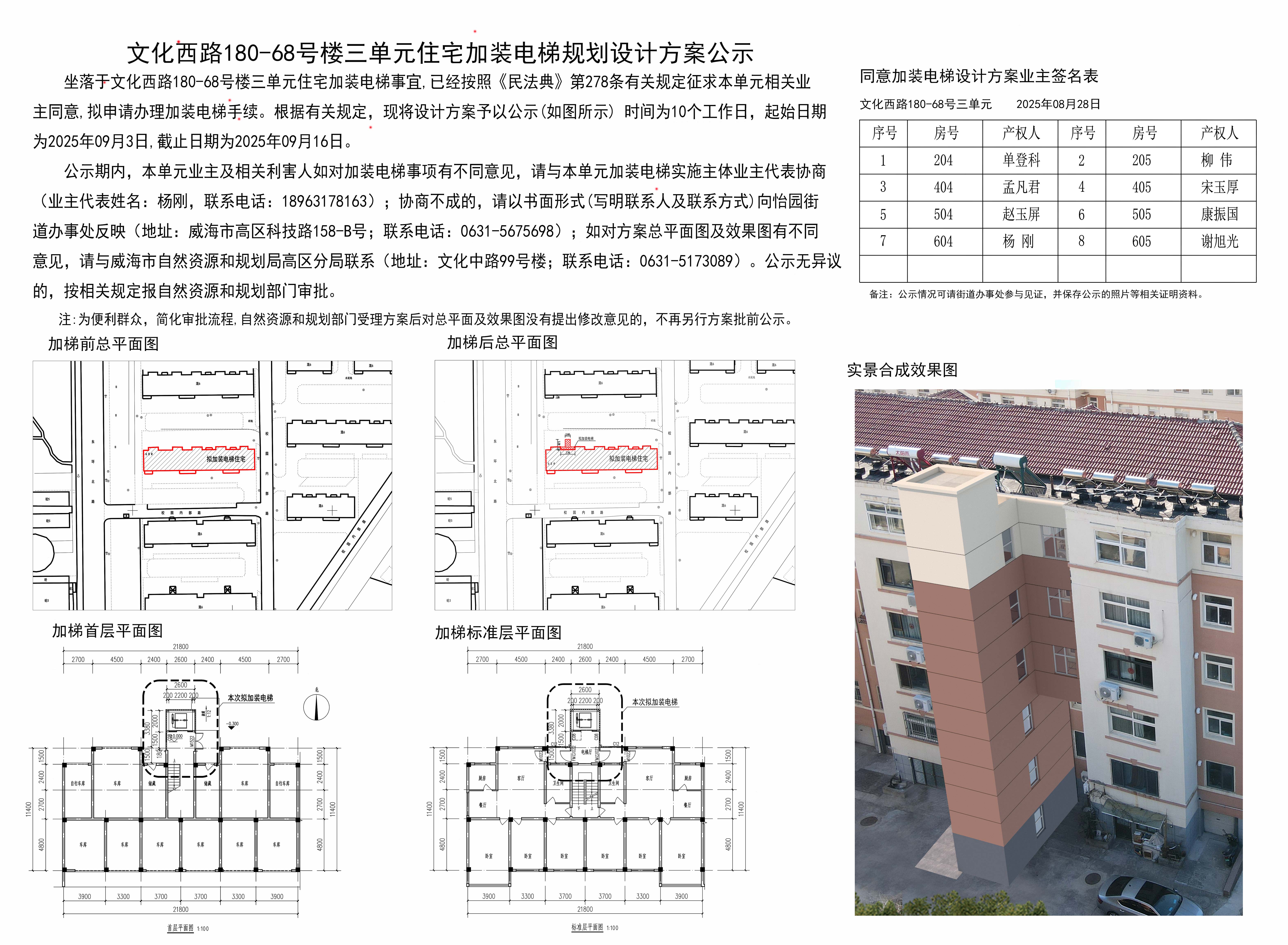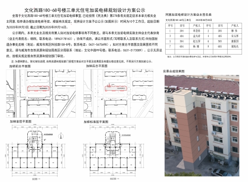 文化西路180-68号楼三单元住宅加装电梯规划设计方案公示