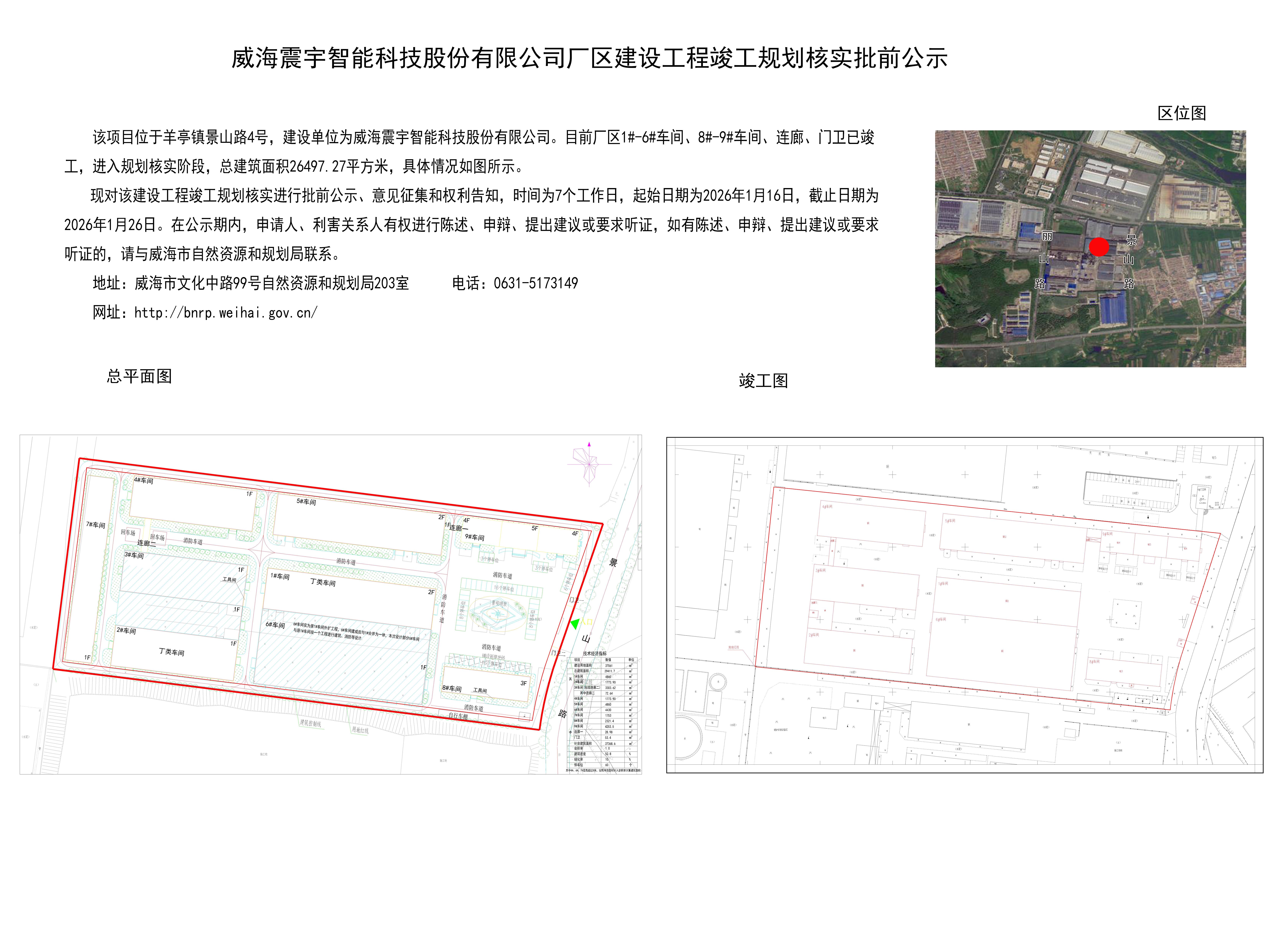 威海震宇智能科技股份有限公司厂区建设工程竣工规划核实批前公示