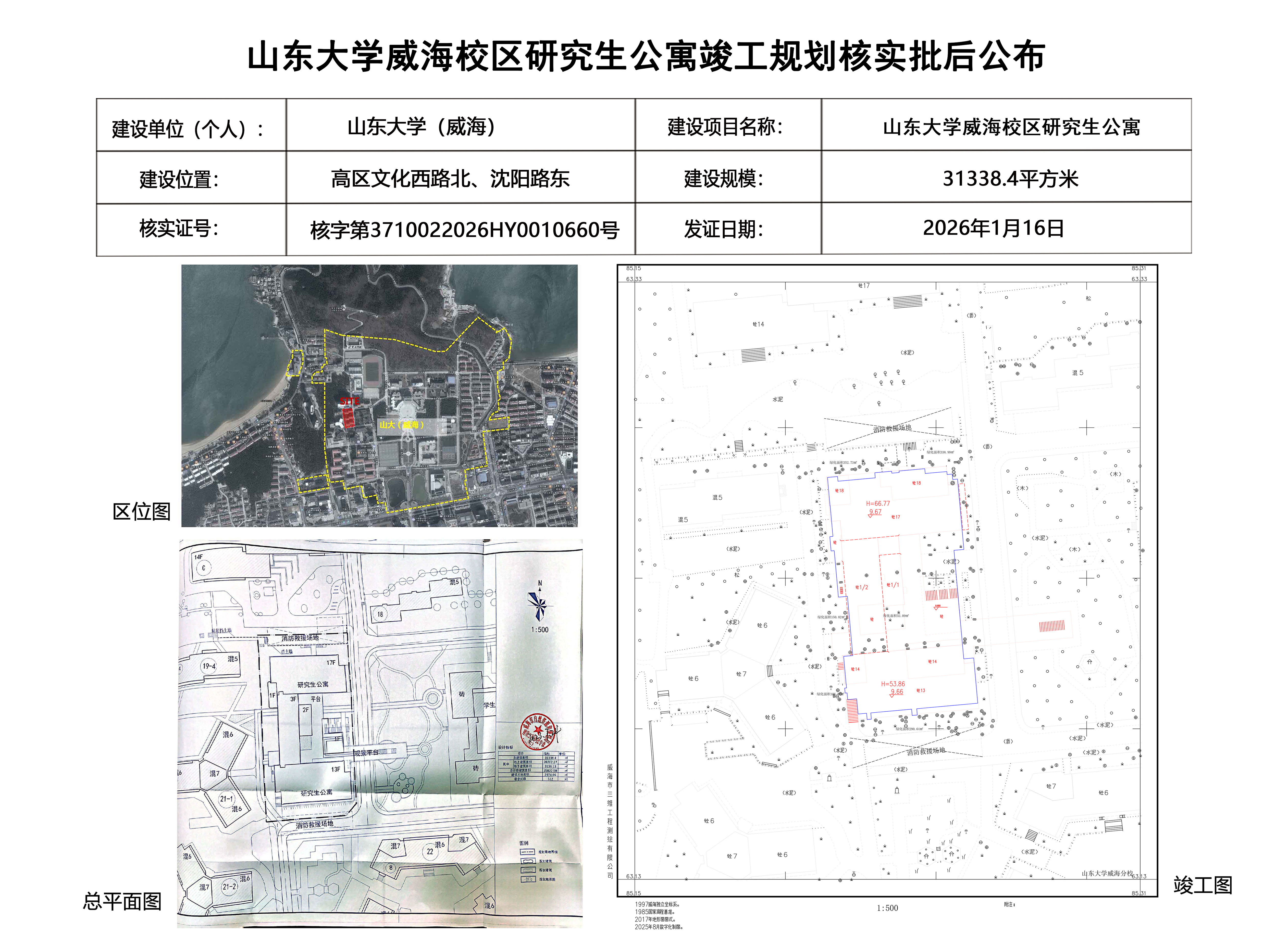 山东大学威海校区研究生公寓建设工程竣工规划核实批后公布