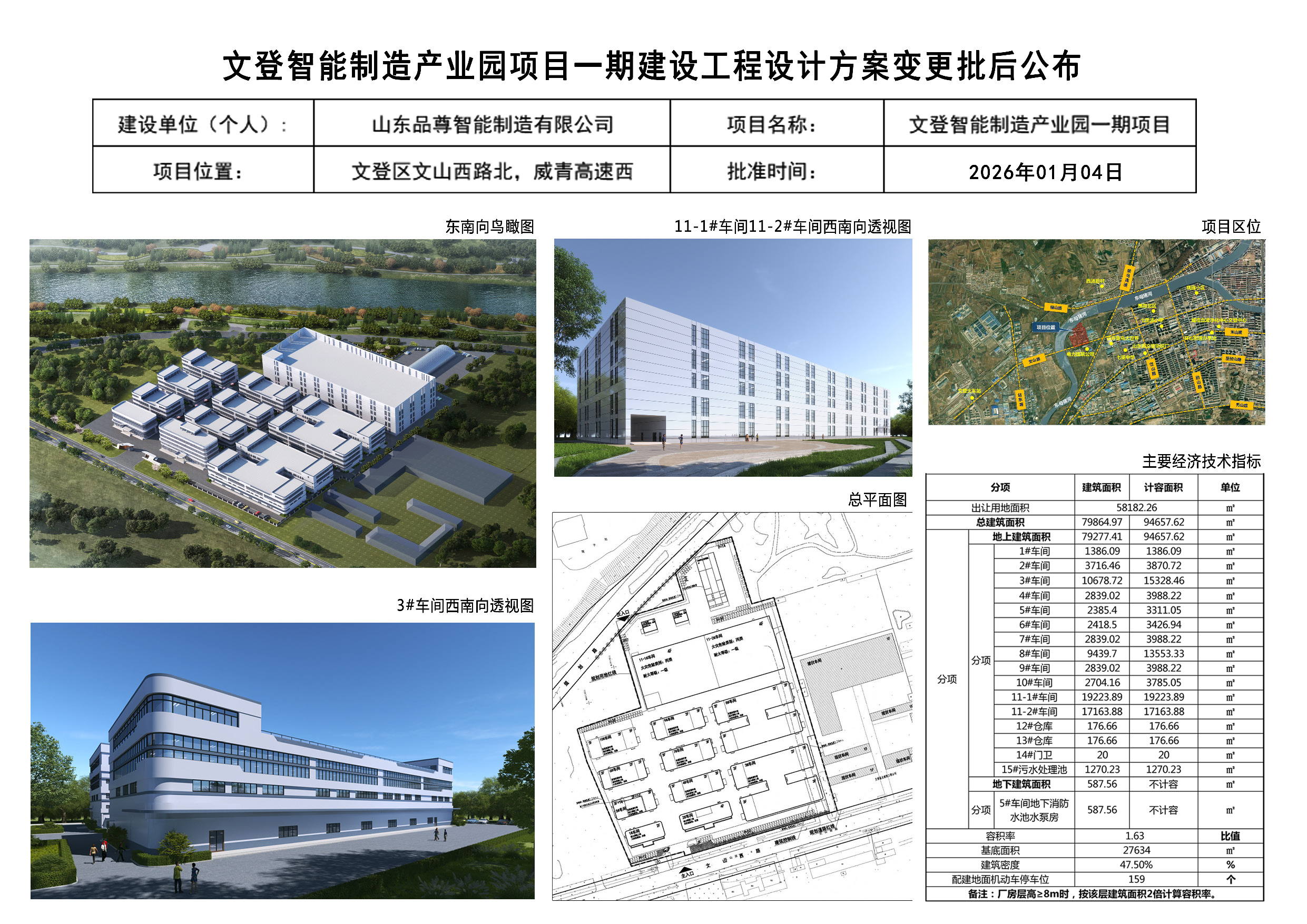 文登智能制造产业园项目一期建设工程设计方案变更批后公布