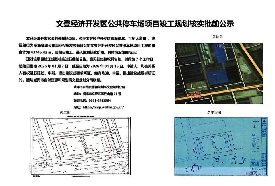 文登经济开发区公共停车场项目竣工规划核实批前公示