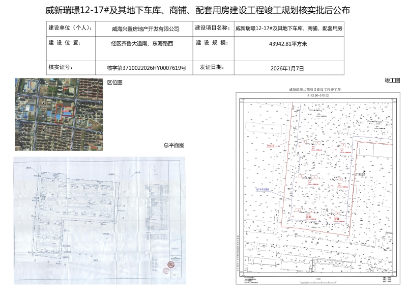 威新瑞璟12-17#及其地下车库、商铺、配套用房建设工程竣工规划核实批后公布