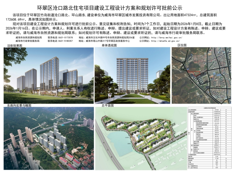 环翠区沧口路北住宅项目建设工程设计方案和规划许可批前公示