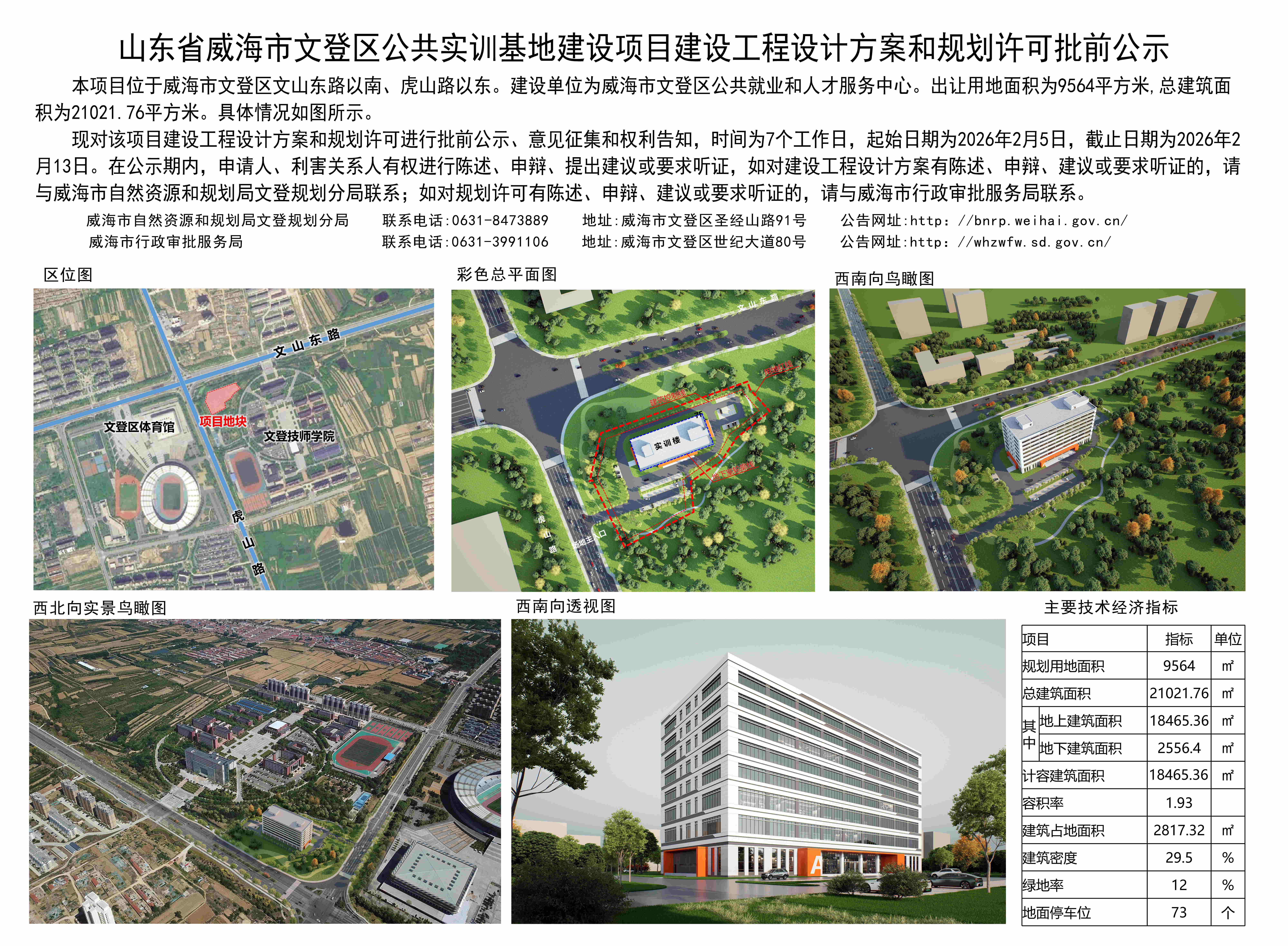 山东省威海市文登区公共实训基地建设项目建设工程设计方案和规划许可批前公示