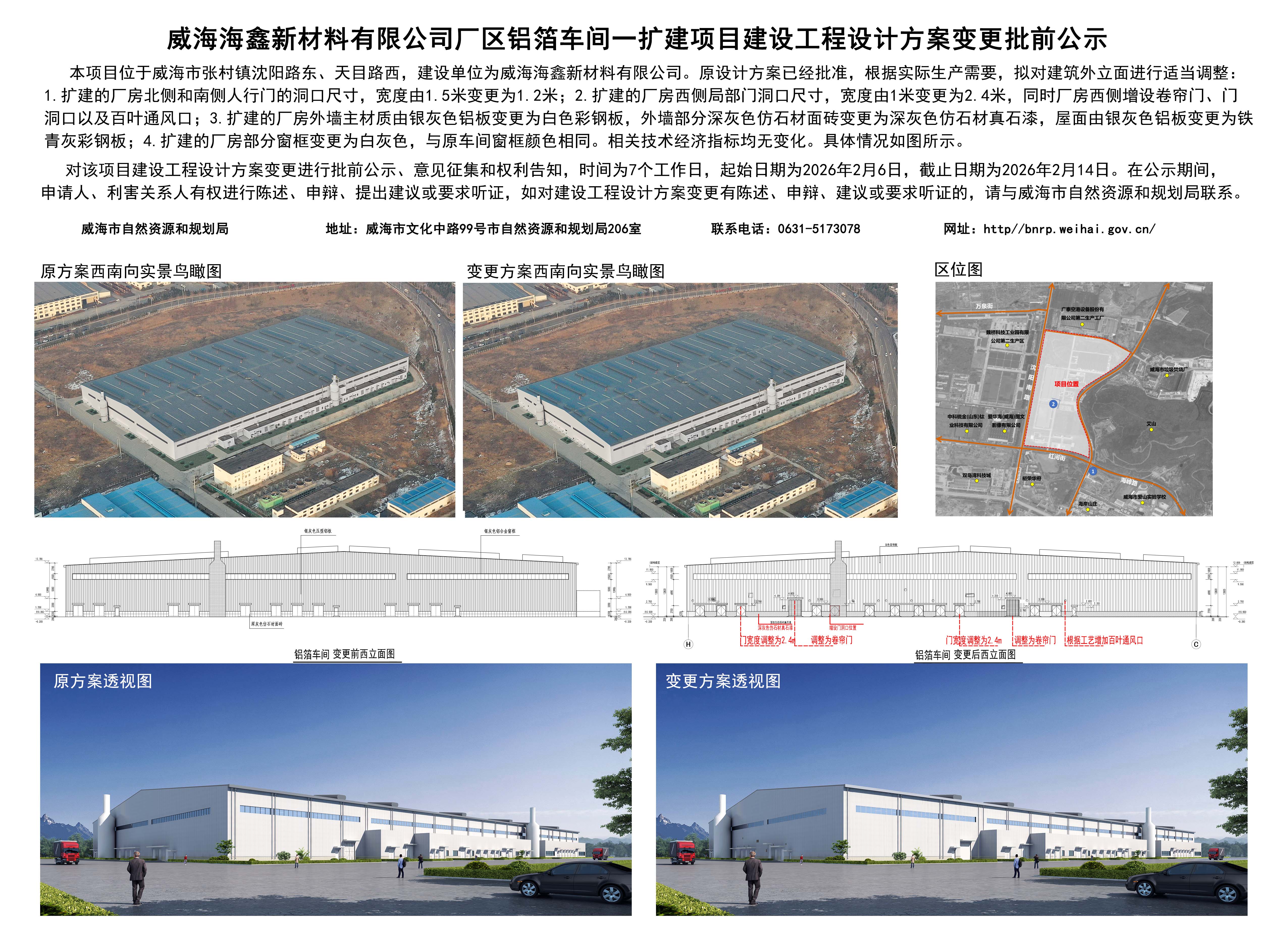 威海海鑫新材料有限公司厂区铝箔车间一扩建项目建设工程设计方案变更批前公示