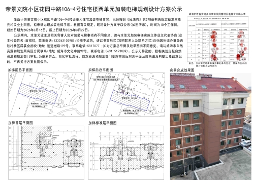 帝景文院小区花园中路106-4号住宅楼西单元加装电梯规划设计方案公示