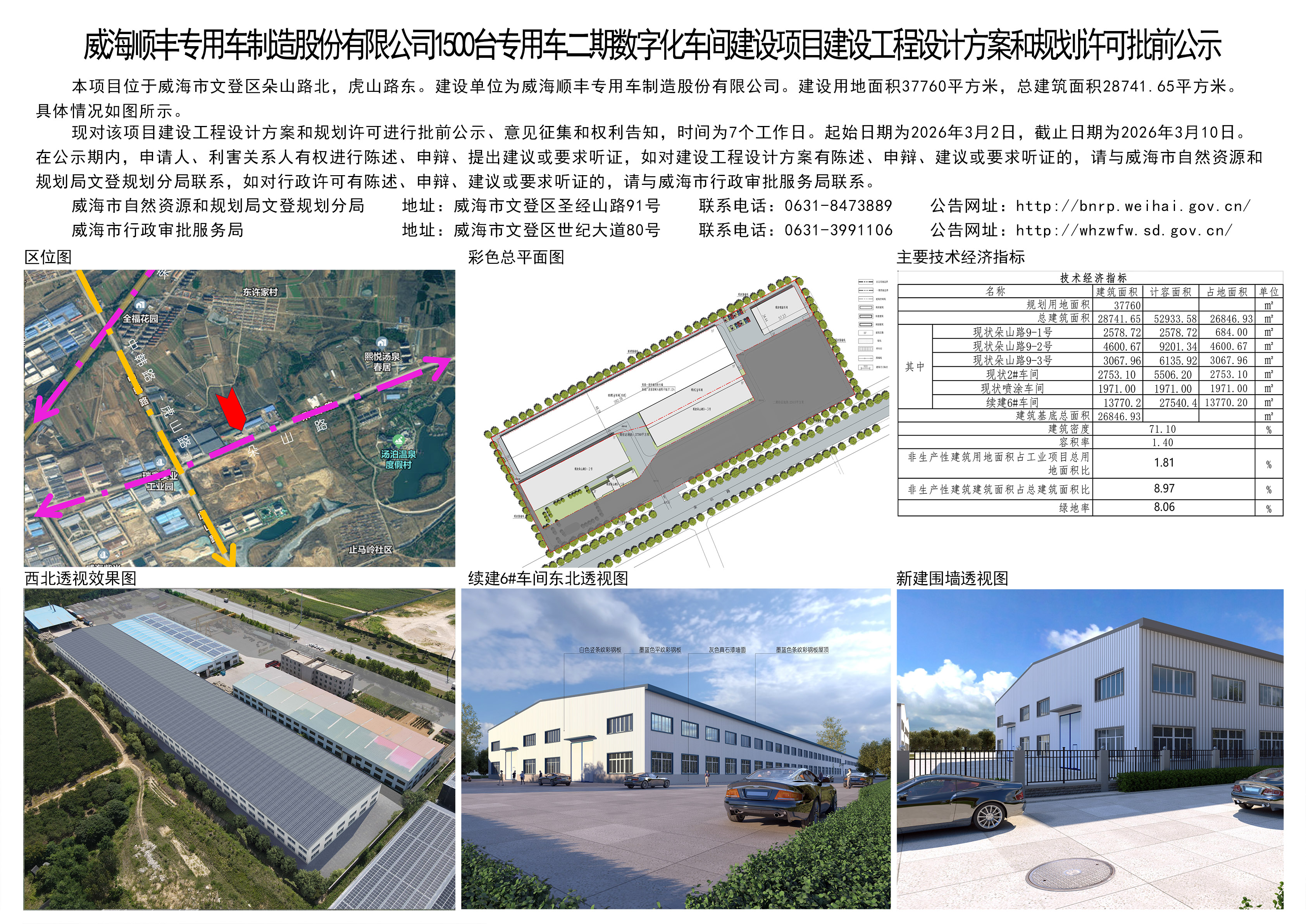 威海顺丰专用车制造股份有限公司1500台专用车二期数字化车间建设项目建设工程设计方案和规划许可批前公示