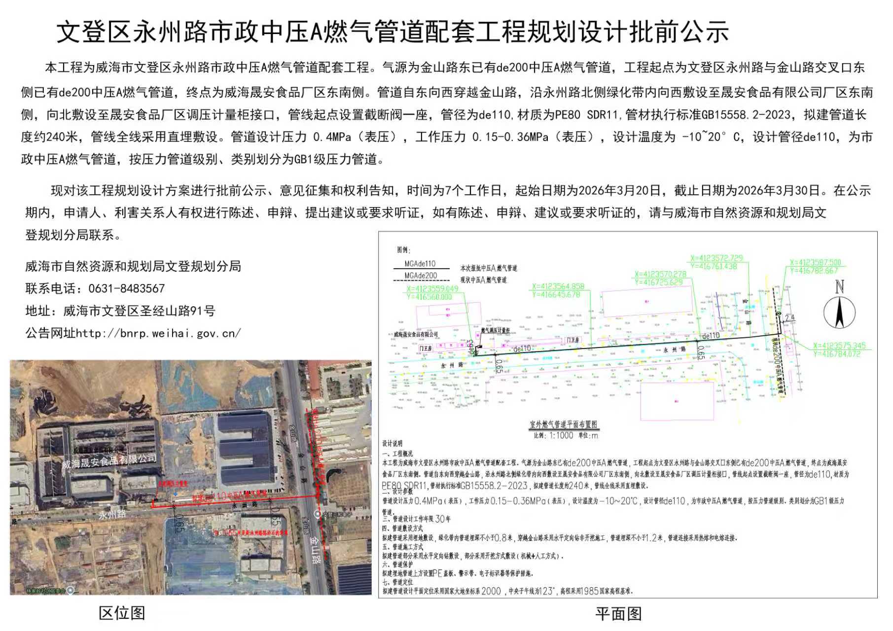 文登区永州路市政中压A燃气管道配套工程规划设计批前公示