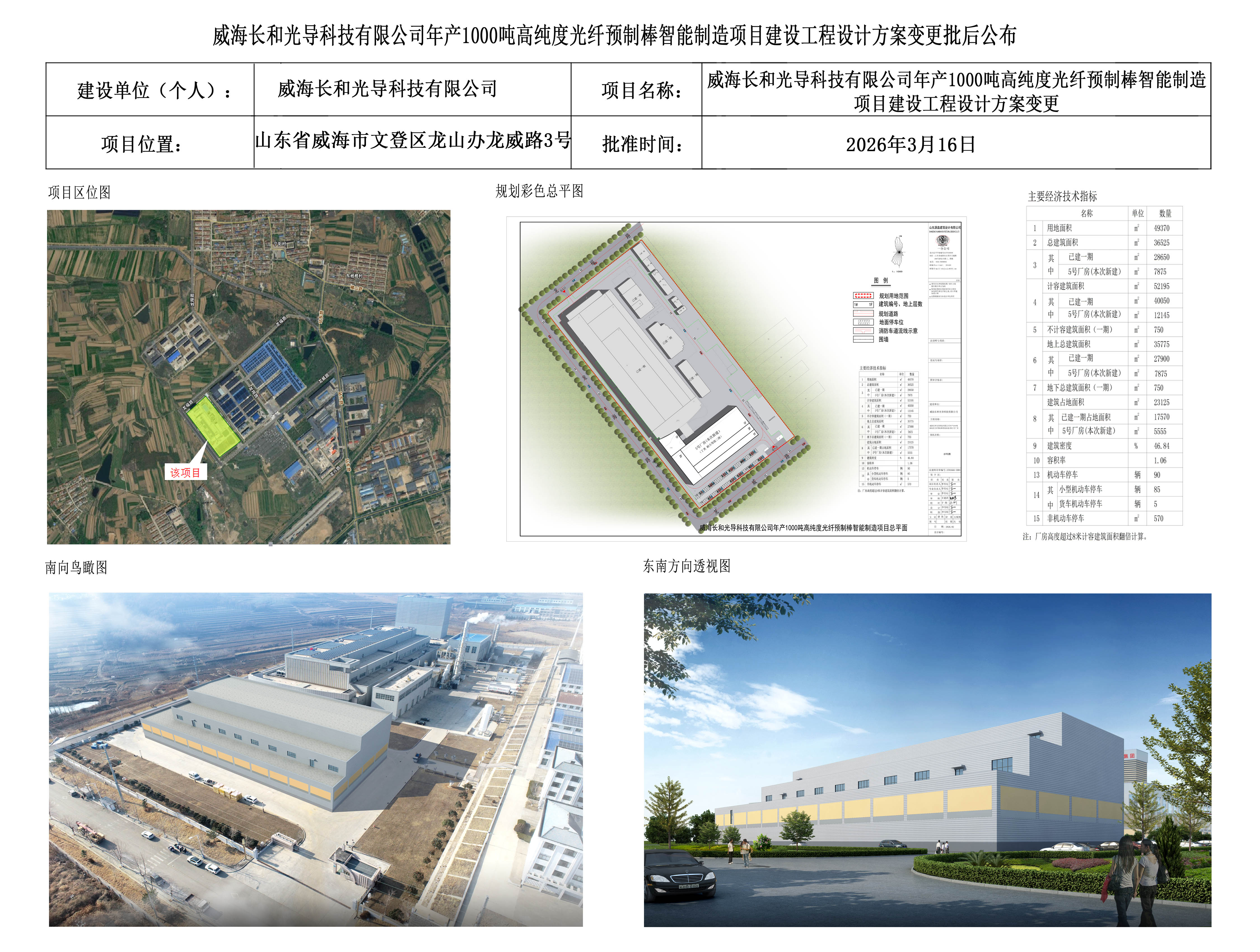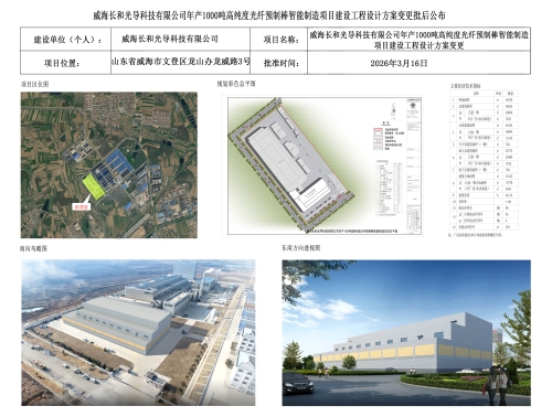 威海长和光导科技有限公司年产1000吨高纯度预制棒智能制造项目建设工程设计方案变更批后公布